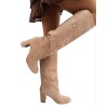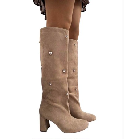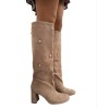 BOTTES HAUTES EN DAIM AVEC CLOUS – TALON CARRÉ CONFORTABLE MISS ASHLEY BEIGE