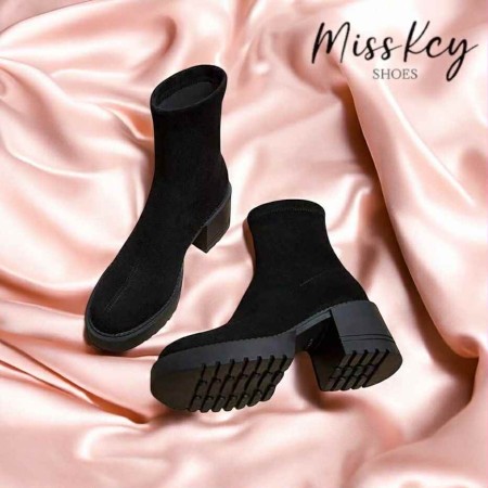 BOTTINES “HAILEY” – TALON ÉPAIS & CONFORT EN SUÉDINE NOIR