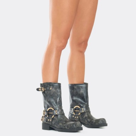 CHAUSSURES FEMME BOTTES BOTTINES BOUCLES BIKER RONA NOIR