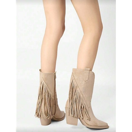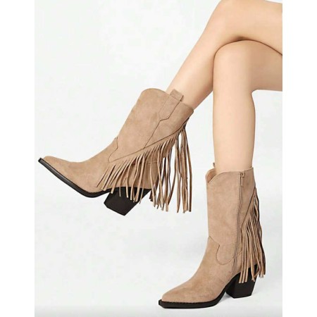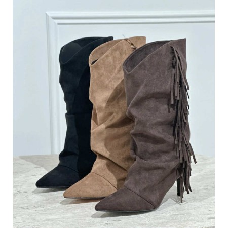 Les bottines EMMANUELLE réinventent le style cowgirl chic dans une version ultra raffinée et féminine. Avec leur petit talon aiguille confortable et leurs franges délicates, elles apportent une touche de glamour subtil et de caractère à chacune de tes tenues.