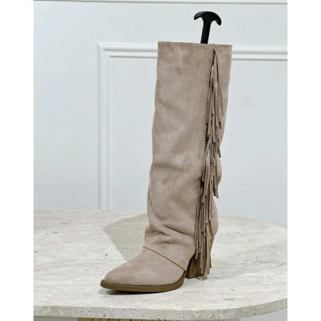 Les bottes CLARA incarnent le charme bohème et l’esprit western revisité. Avec leurs franges latérales délicatement placées et leur talon ultra confortable, elles sont la pièce tendance et féminine de la saison.