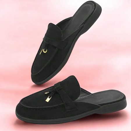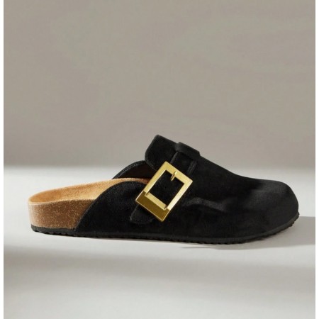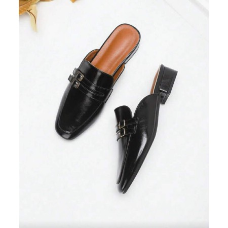 Adoptez un look chic et sans effort avec nos mules type mocassins en matière synthétique haute qualité. Alliant le style intemporel du mocassin à la praticité d'une mule, ce modèle noir brillant avec doubles boucles dorées est l'atout charme de votre garde-robe de saison. Confortables et faciles à enfiler, elles vous accompagnent du bureau au dîner en un clin d'œil.